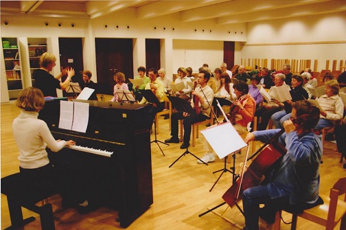 Das Orchester begleitet den Chor, spielt aber auch eigenständig Kammermusik im Gottesdienst oder bei Empfängen, Hochzeiten usw.
